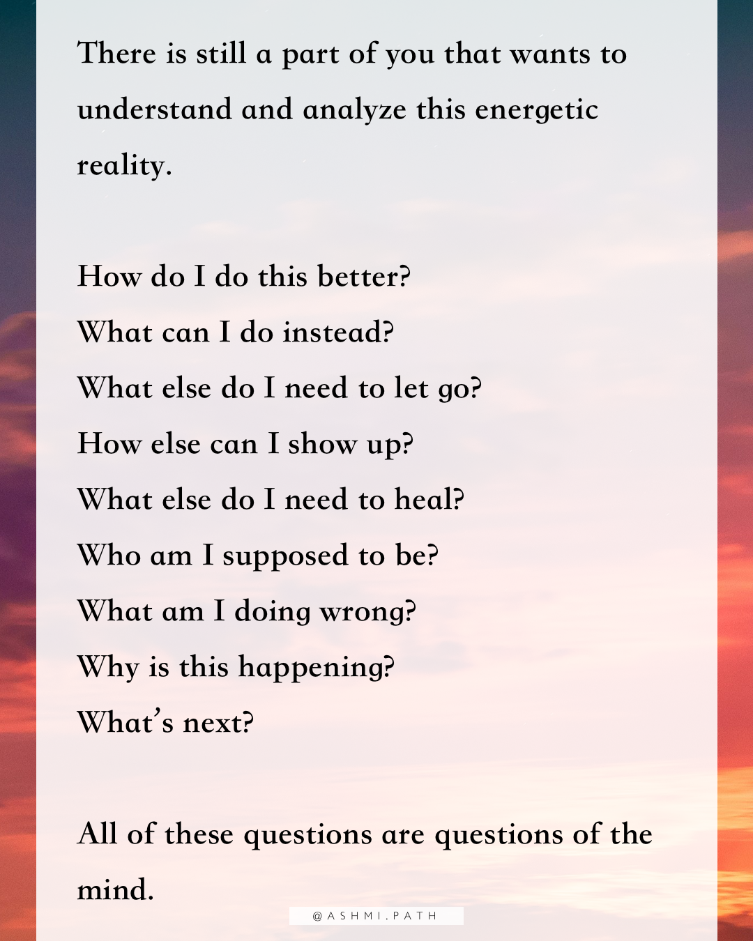 There is still a part of you that wants to understand and analyze this energetic reality.