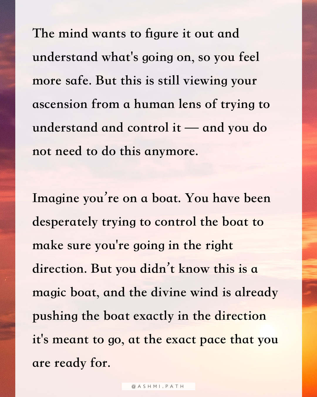 There's a huge difference between thinking your way through the ascension to being fully in the ascension — allowing it to carry you without resisting, judging, or needing to squeeze it into a box that you can understand.