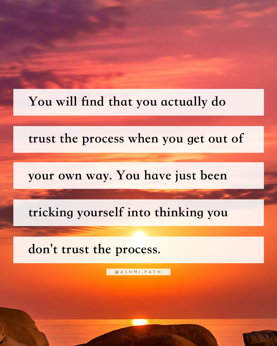 You will find that you actually do trust the process when you get out of your own way. You have just been tricking yourself into thinking you don't trust the process.