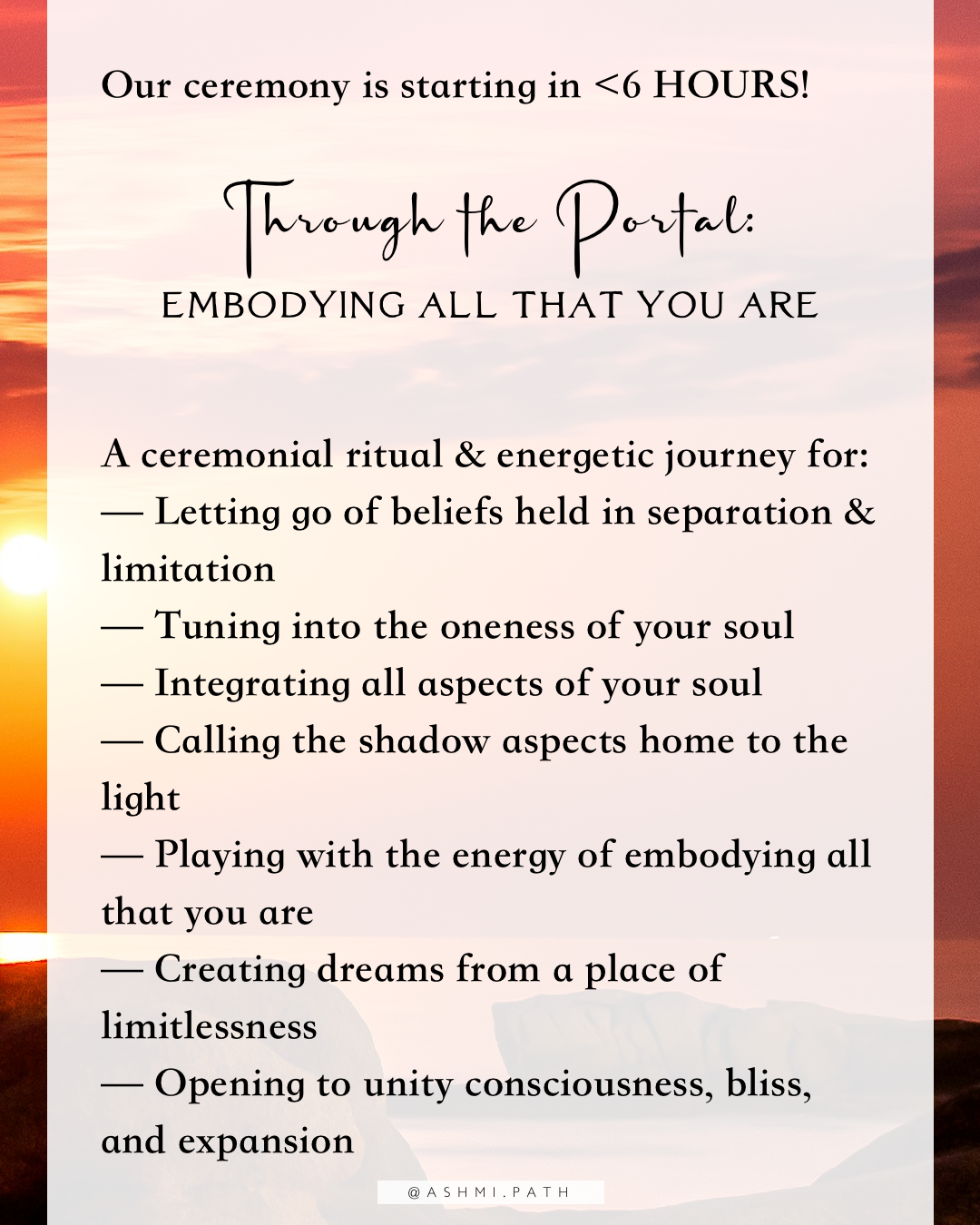Today's ceremony (on the full moon) is starting in ~6 hours! For those who can't make it live, you can still sign up to get the recording.