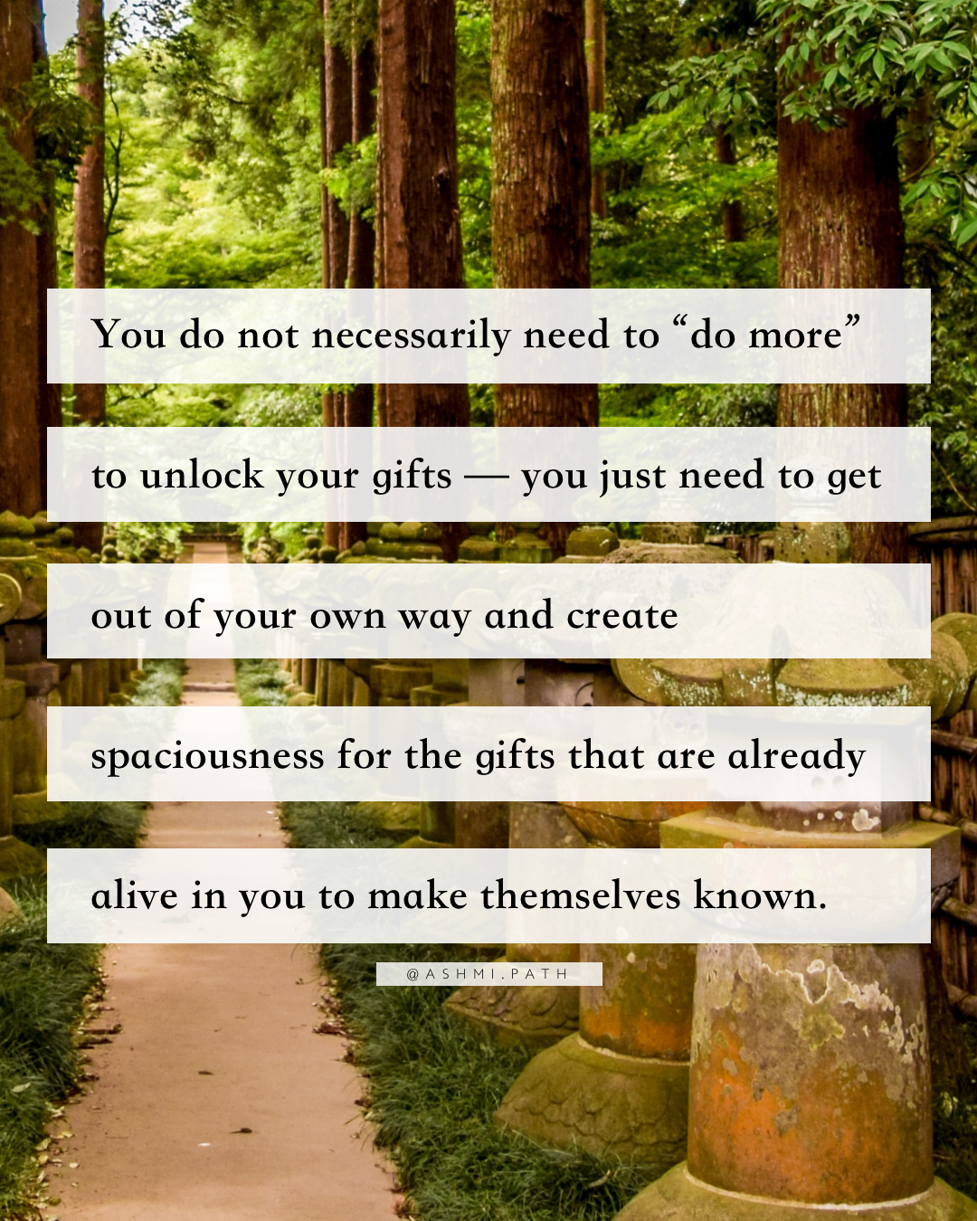 You do not necessarily need to “do more” to unlock your gifts — you just need to get out of your own way and create spaciousness for the gifts that are already alive in you to make themselves known.