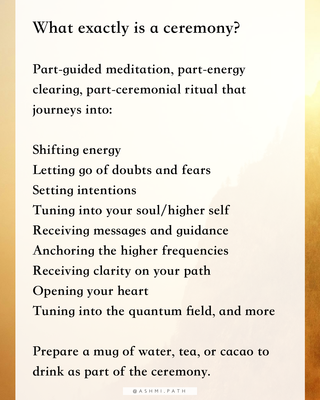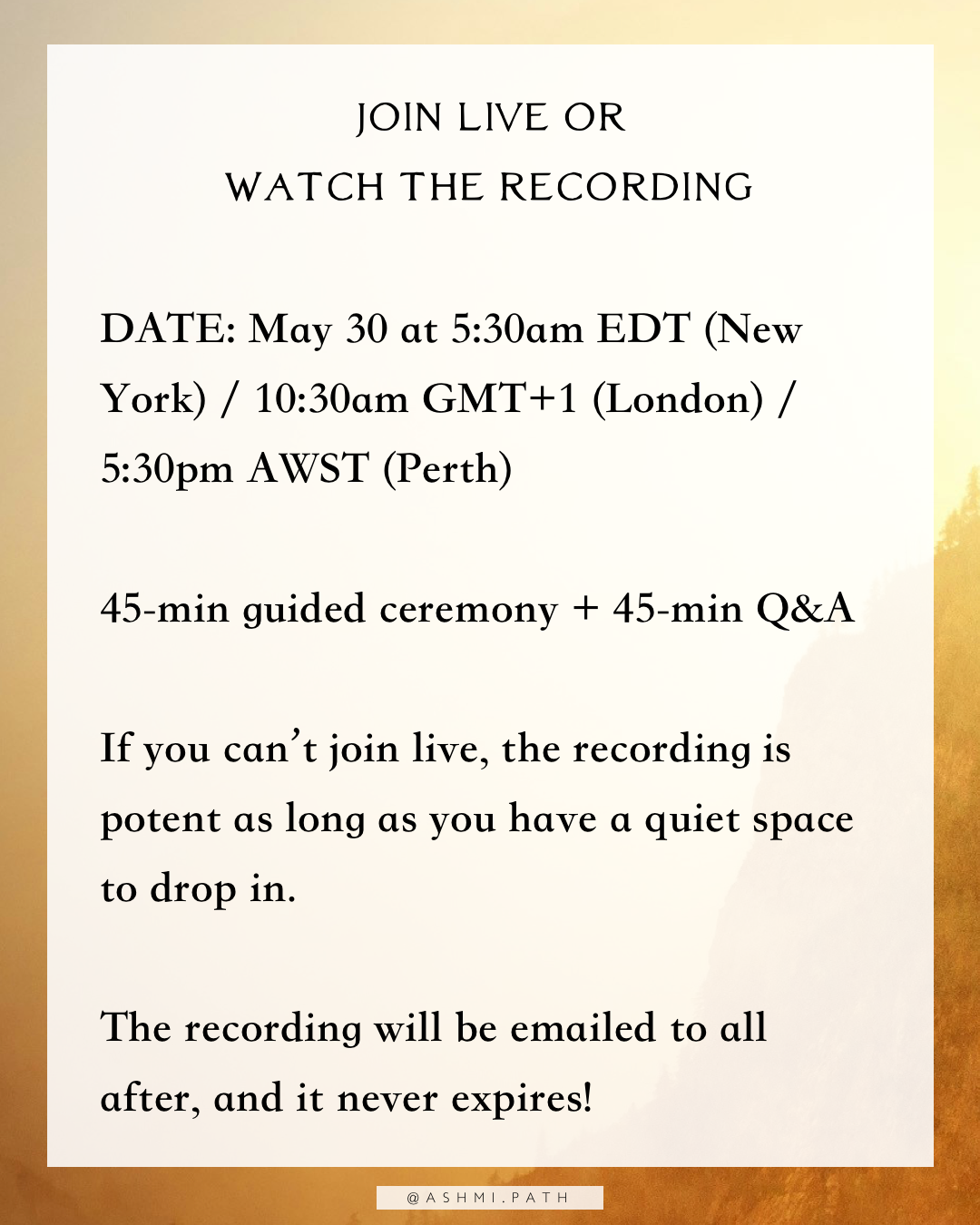 45-min guided ceremony + 45-min Q&A