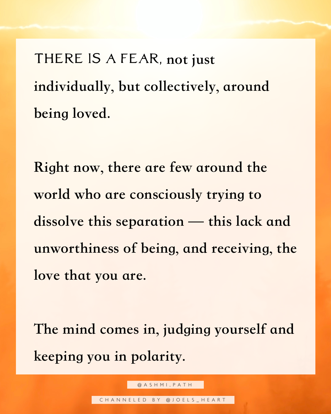 Get to know the love that you are in its totality, because you’re not always going to get it from outside of yourself now. The collective doesn’t know it yet, so you have to BE it.