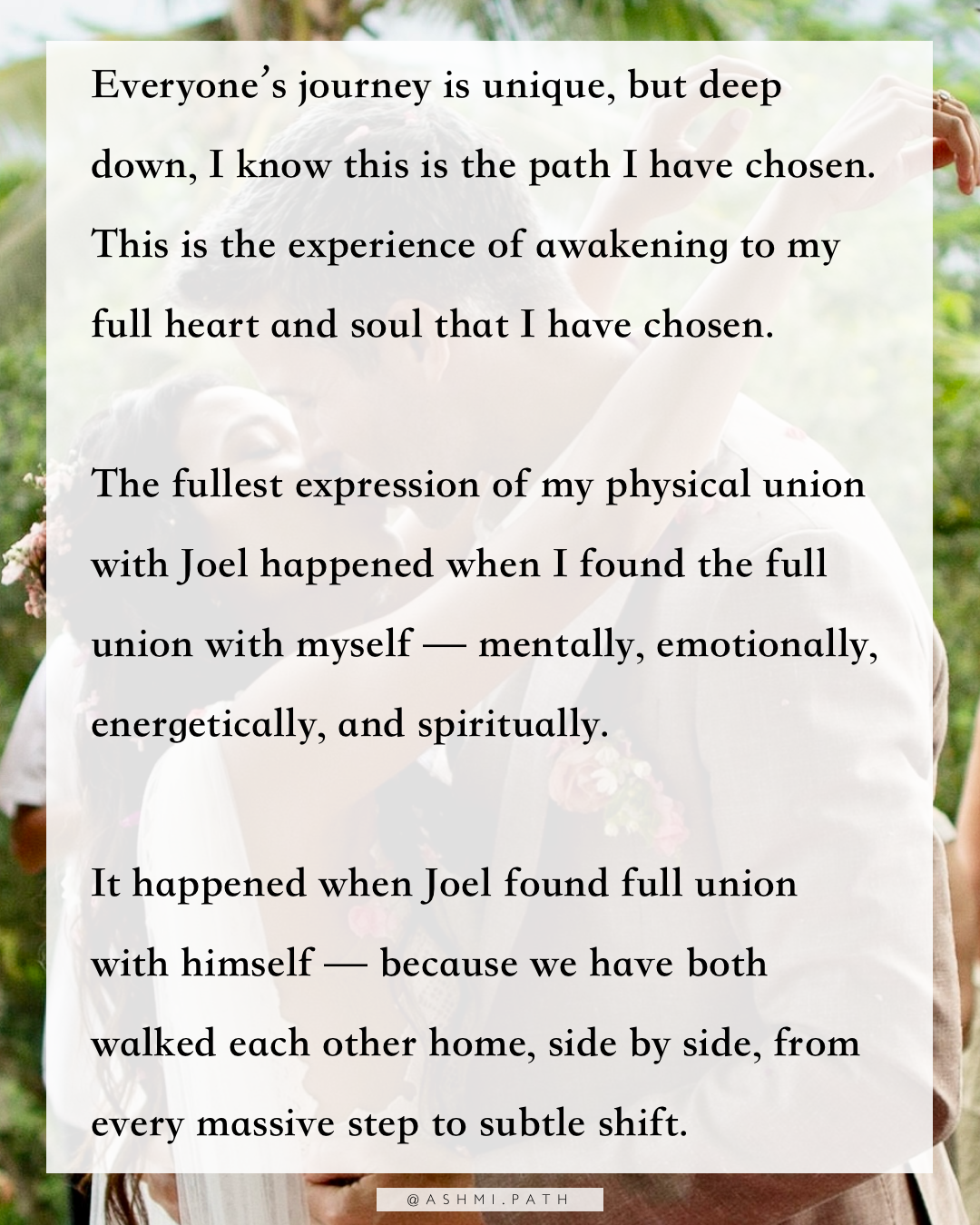 The fullest expression of my physical union with Joel happened when I found the full union with myself — mentally, emotionally, energetically, and spiritually.