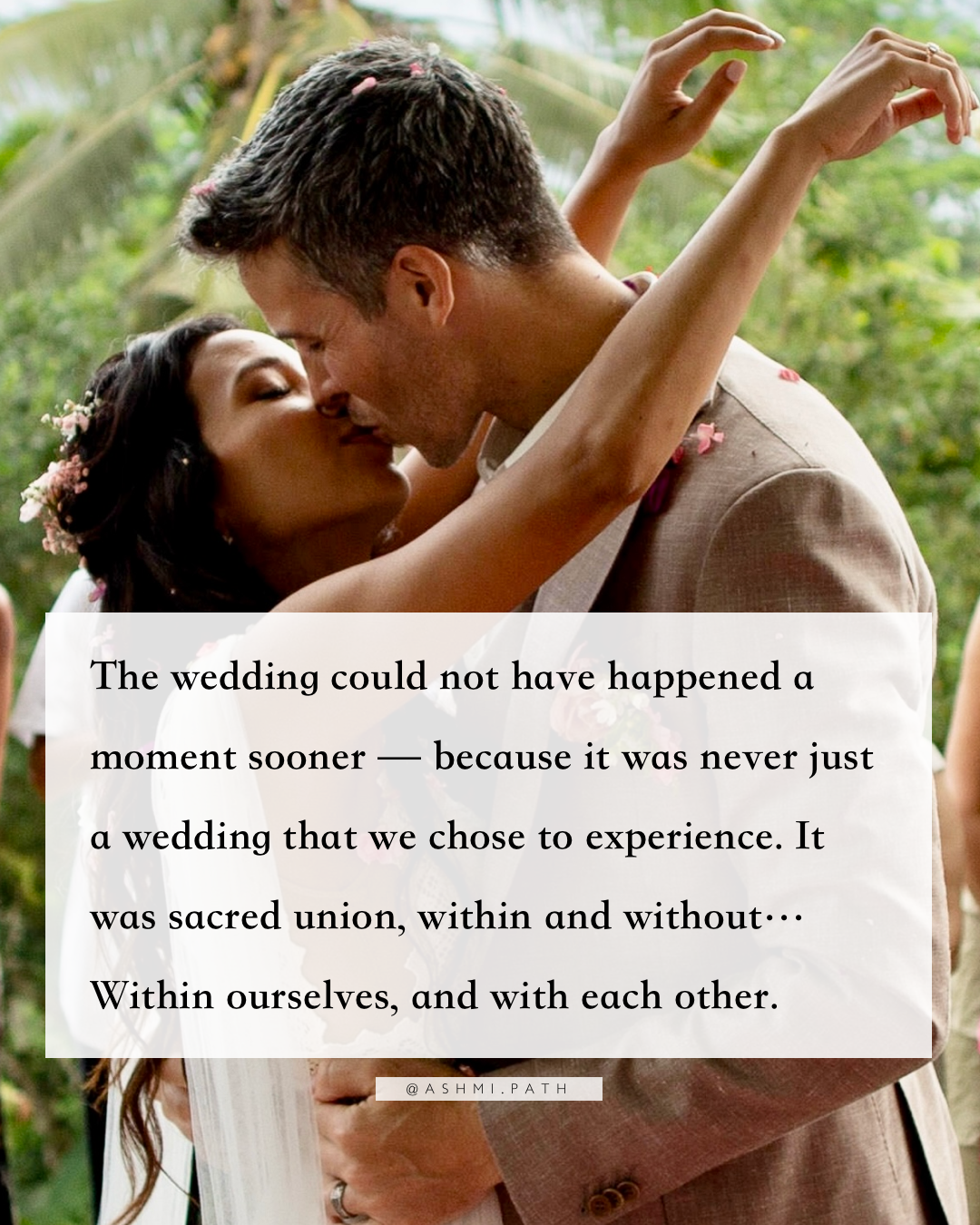 The wedding could not have happened a moment sooner — because it was never just a wedding that we chose to experience. It was sacred union, within and without… Within ourselves, and with each other.