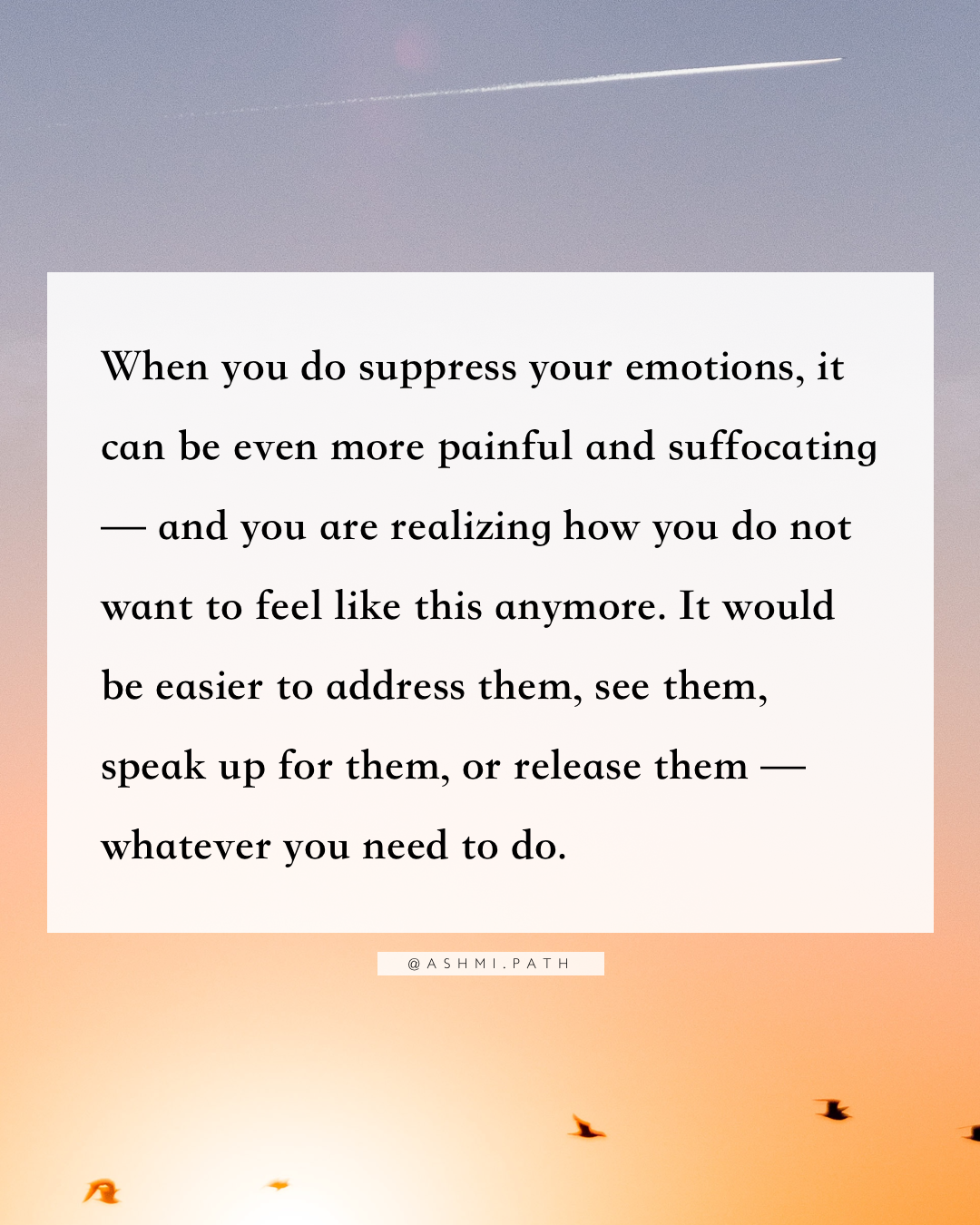 When you do suppress your emotions, it can be even more painful and suffocating — and you are realizing how you do not want to feel like this anymore. It would be easier to address them, see them, speak up for them, or release them — whatever you need to do.