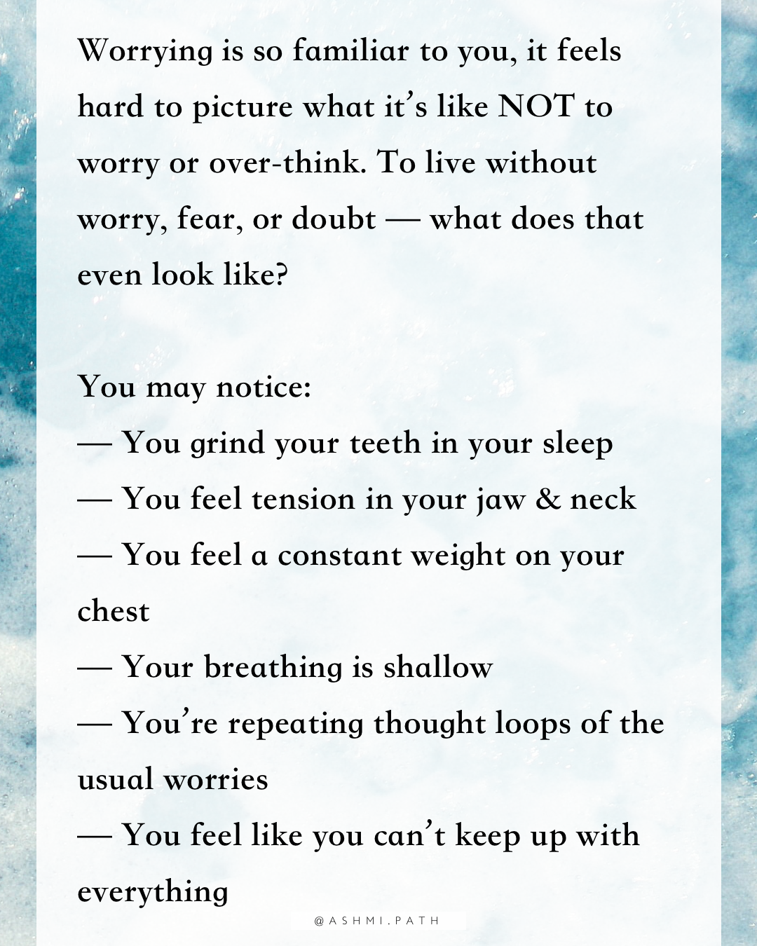 Worrying is so familiar to you, it feels hard to picture what it’s like NOT to worry or over-think. To live without worry, fear, or doubt — what does that even look like?