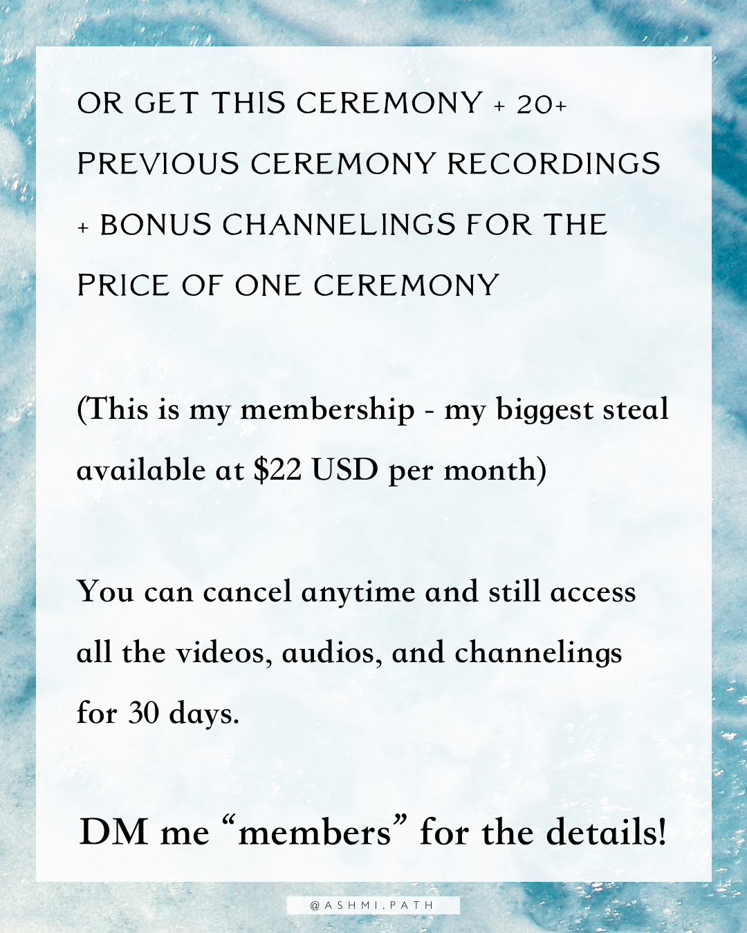 OR GET THIS CEREMONY + 20+ PREVIOUS CEREMONY RECORDINGS + BONUS CHANNELINGS FOR THE PRICE OF ONE CEREMONY