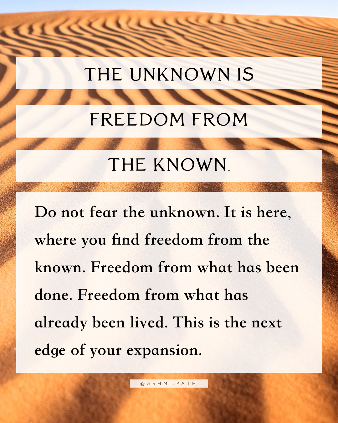 Do not fear the unknown. It is here, where you find freedom from the known. Freedom from what has been done. Freedom from what has already been lived. This is the next edge of your expansion.