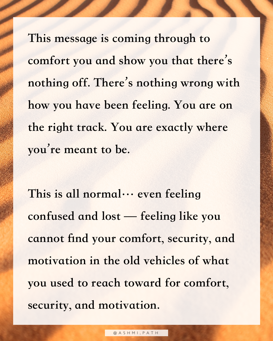 This is all normal… even feeling confused and lost — feeling like you cannot find your comfort, security, and motivation in the old vehicles of what you used to reach toward for comfort, security, and motivation.