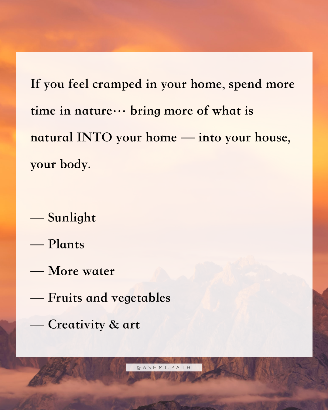 If you feel cramped in your home, spend more time in nature… bring more of what is natural INTO your home — into your house, your body.